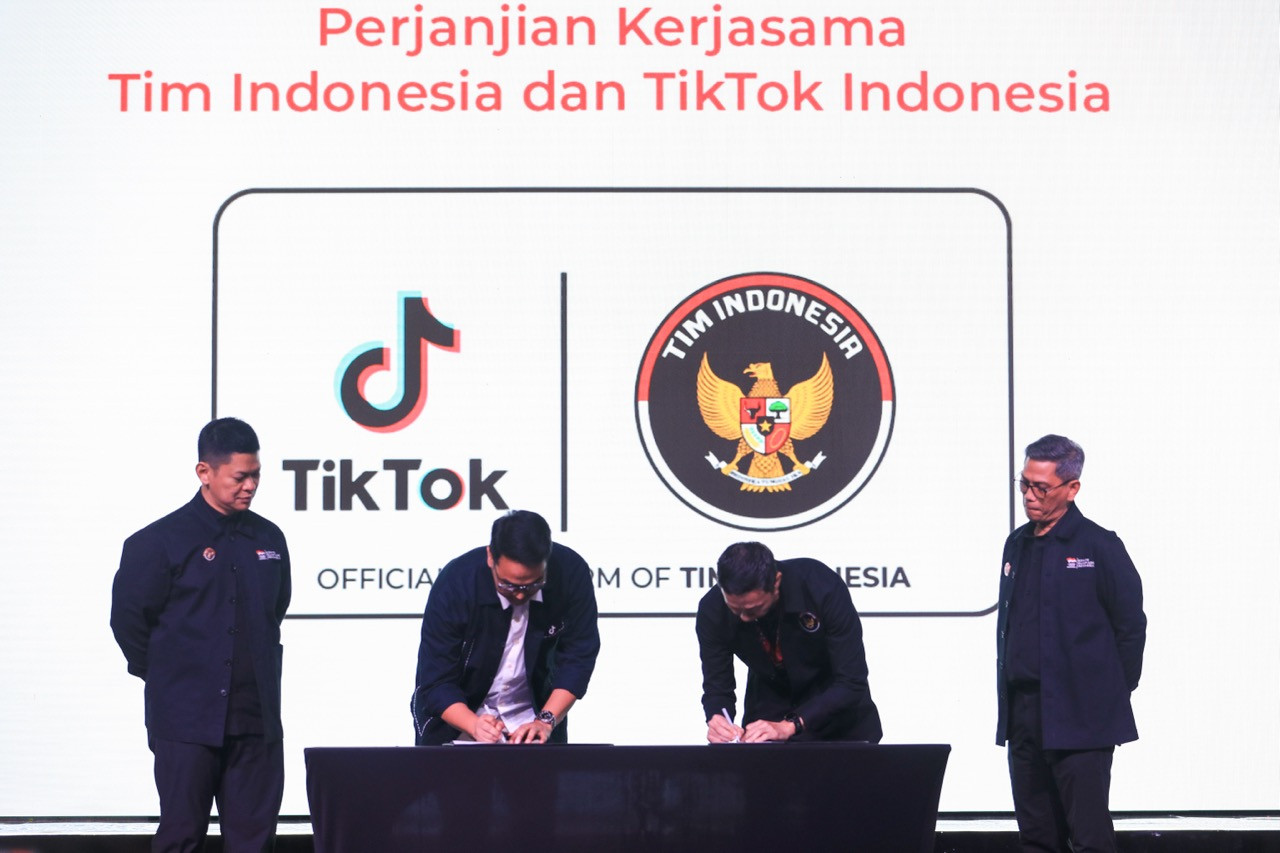 Penandatanganan MoU dilakukan oleh perwakilan Tim Indonesia Direktur Utama Tim Indonesia, Richard Sam Bera bersama Head of Public Policy and Government Relations, TikTok Indonesia, Hilmi Adrianto.