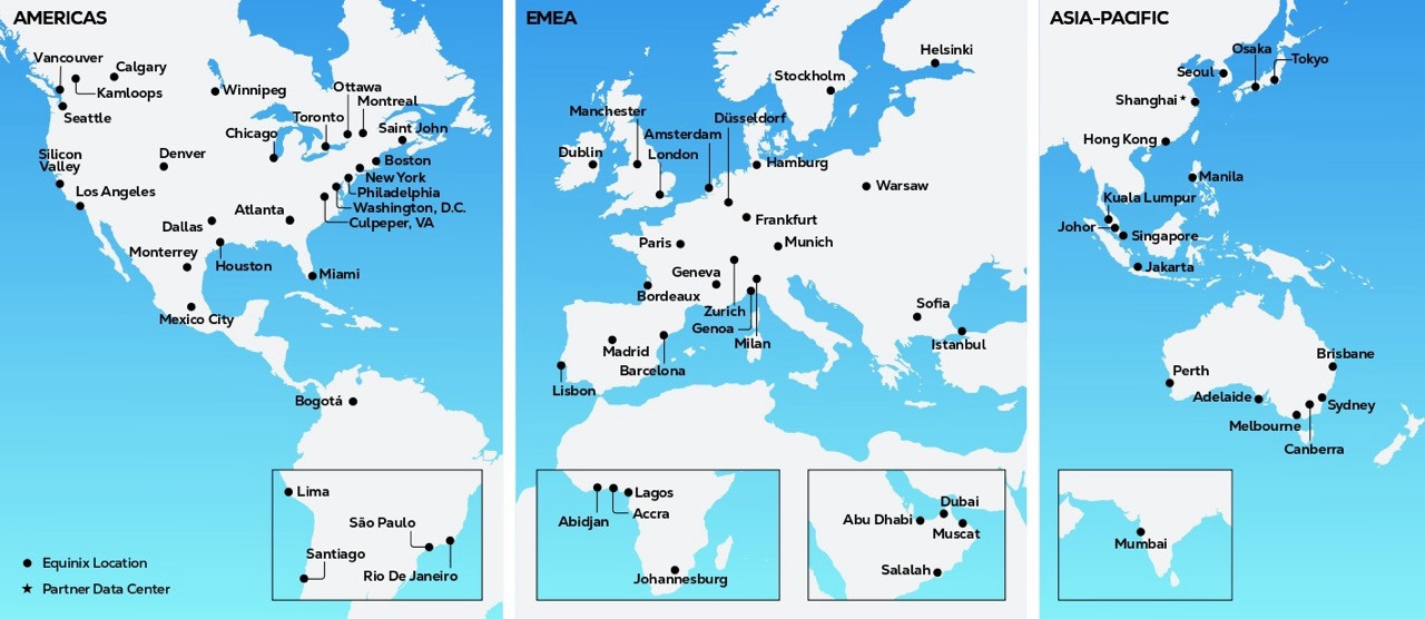 Tiga pusat data yang netral terhadap operator dan memiliki performa tinggi MN1, MN2, dan MN3 menyediakan lebih dari 1.000 kabinet kapasitas serta lahan untuk ekspansilebih lanjut. Fasilitas terbaru yang diluncurkan, yaitu MN2, menawarkan kapasitas hingga 500 kabinet. Akuisisi ini memungkinkan Equinix untuk langsung mendukung kebutuhan pelanggan lokal maupun global yang ingin memperluas bisnisnya ke Filipina.