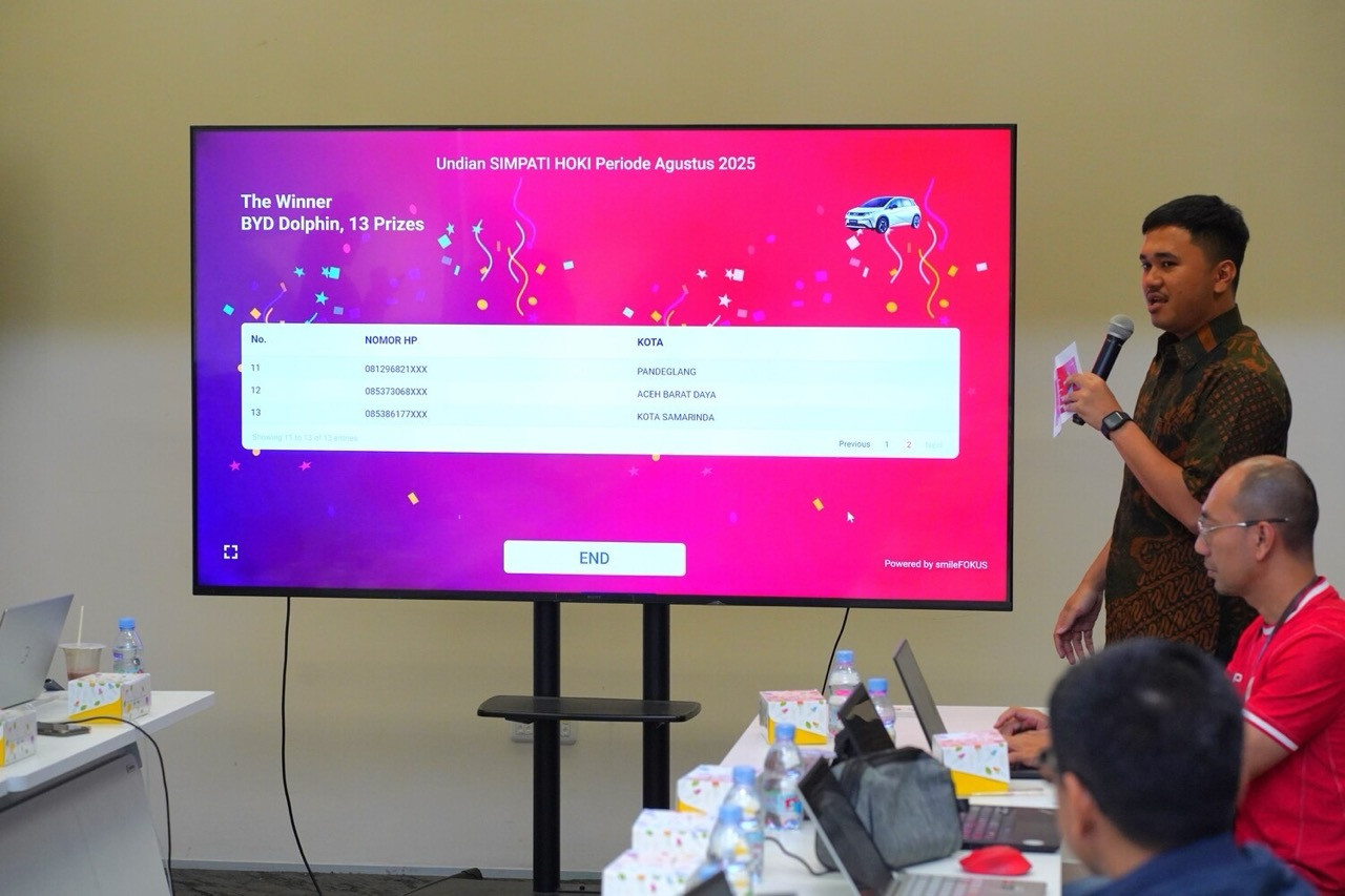 JAKARTA (IndoTelko) - Memperingati Hari Pelanggan Nasional pada 4 September 2025, Telkomsel mengumumkan 13 pelanggan beruntung sebagai pemenang Grand Prize berupa mobil listrik BYD Dolphin dalam program undian SIMPATI HOKI. Pengumuman ini sekaligus menandai berakhirnya program undian yang telah berlangsung sejak 1 Juni hingga 31 Agustus 2025.