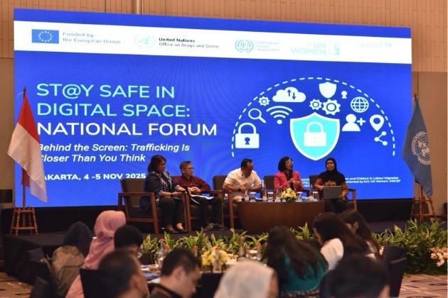 JAKARTA (IndoTelko) - United Nations Office on Drugs and Crime (UNODC) gelar forum nasional “St@y Safe in Digital Space: Behind the Screen—Trafficking Is Closer Than You Think” di Double Tree Hotel Jakarta beberapa waktu lalu untuk menyoroti eskalasi perdagangan orang yang semakin banyak difasilitasi ruang digital, termasuk perekrutan melalui iklan kerja palsu dan skema migrasi menyesatkan.