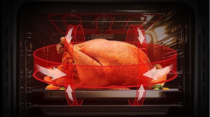Untuk kebutuhan porsi besar, BO 1682 CABK menawarkan kapasitas hingga 80 liter. Fitur konveksi memastikan panas tersebar optimal di seluruh ruang oven, sementara pintu tiga lapis kaca menjaga suhu tetap stabil. Oven ini juga dibekali grill turnspit yang memungkinkan proses pemanggangan daging berputar, sehingga tingkat kematangan lebih merata dan tekstur tetap juicy.