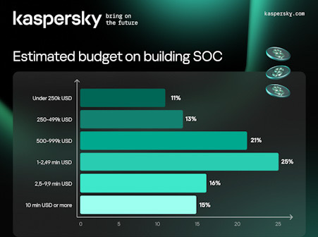 Berdasarkan studi global Kaspersky, anggaran rata-rata untuk mendirikan SOC secara global berada di kisaran 2 juta dolar AS. Namun di Asia Pasifik, mayoritas organisasi (93%) merencanakan anggaran di bawah 1 juta dolar AS, dan di Indonesia angkanya mencapai 91%. Meski demikian, terdapat pula organisasi yang mengalokasikan anggaran lebih besar, bahkan hingga 5 juta dolar AS, dengan rata-rata implementasi mencapai 3,5 juta dolar AS.